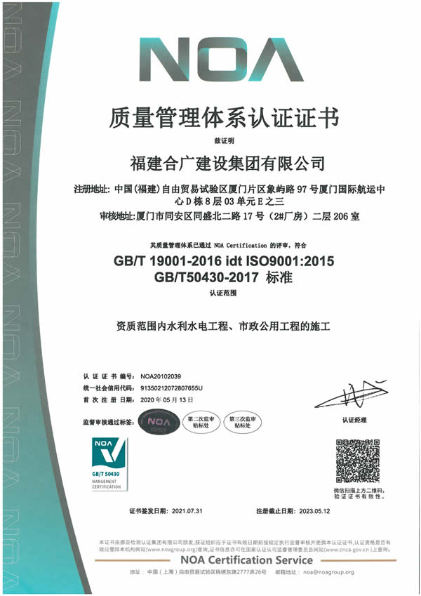 福建合廣建設集團有限公司,注冊資本5188萬元人民幣,公司位于廈門市同安區(qū)鳳山一里151-17號。本公司成立于2013年,公司具備市政公用工程、水利水電工程、房屋建筑工程、公路工程、園林綠化等多專業(yè)施工資質(zhì)。企業(yè)從業(yè)人員100多人,各類專業(yè)技術(shù)人員70多人,其中高級職稱8人,中級職稱40多人,一級建造師6人,二級建造師15多人。