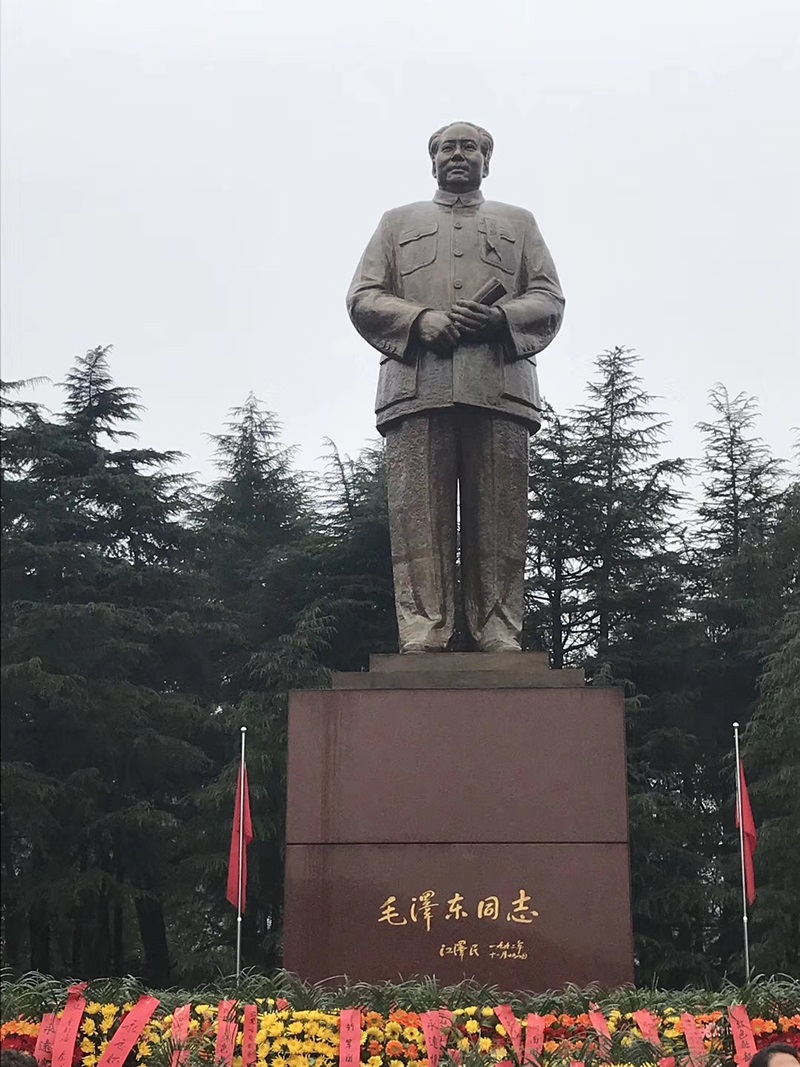 在毛主席故居前,公司一行人懷著敬仰與懷念、熱愛與感激之情聚集在領(lǐng)袖的銅像下,獻上代表誠摯敬意的花籃,虔誠鞠躬,深情仰望,深情表達了對毛主席等老一輩革命家的深切緬懷和崇高敬意。